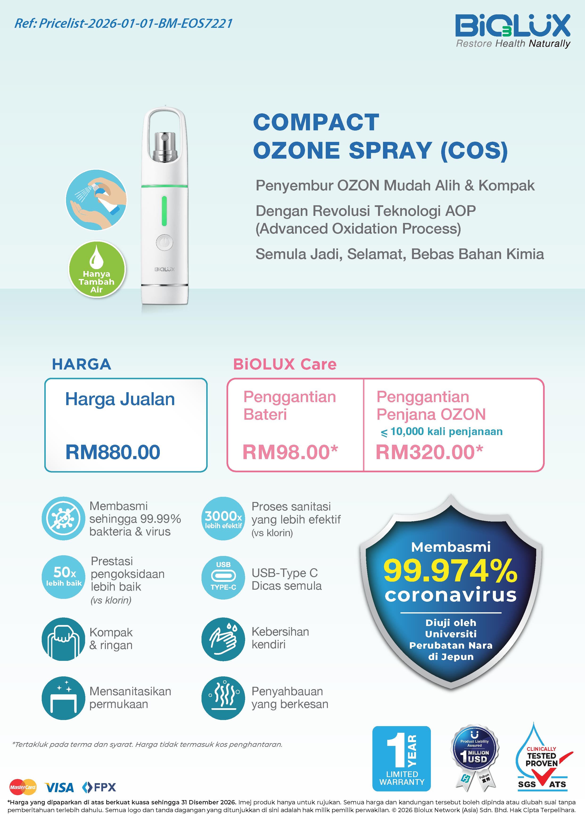 Perkhidmatan EPP tidak tersedia untuk BiOLUX Compact OZONE Spray