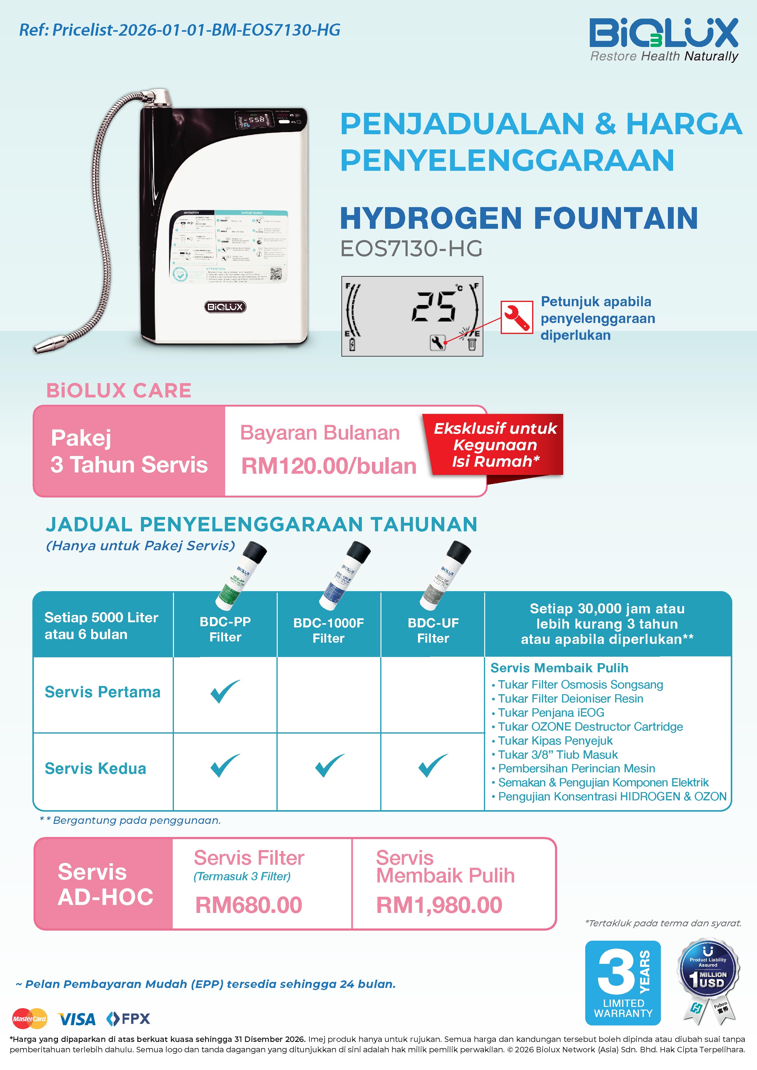 HYDROGEN Fountain memerlukan pemasangan dan pihak kami akan menghubungi anda bagi proses pemasangan selepas selesai proses pembayaran.