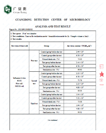 活氧会与致病菌与病毒产生氧化作用,破坏或抑制其RNA。经国际第三方实验室测试,连续使用2小时可达99.97%有效杀菌率。