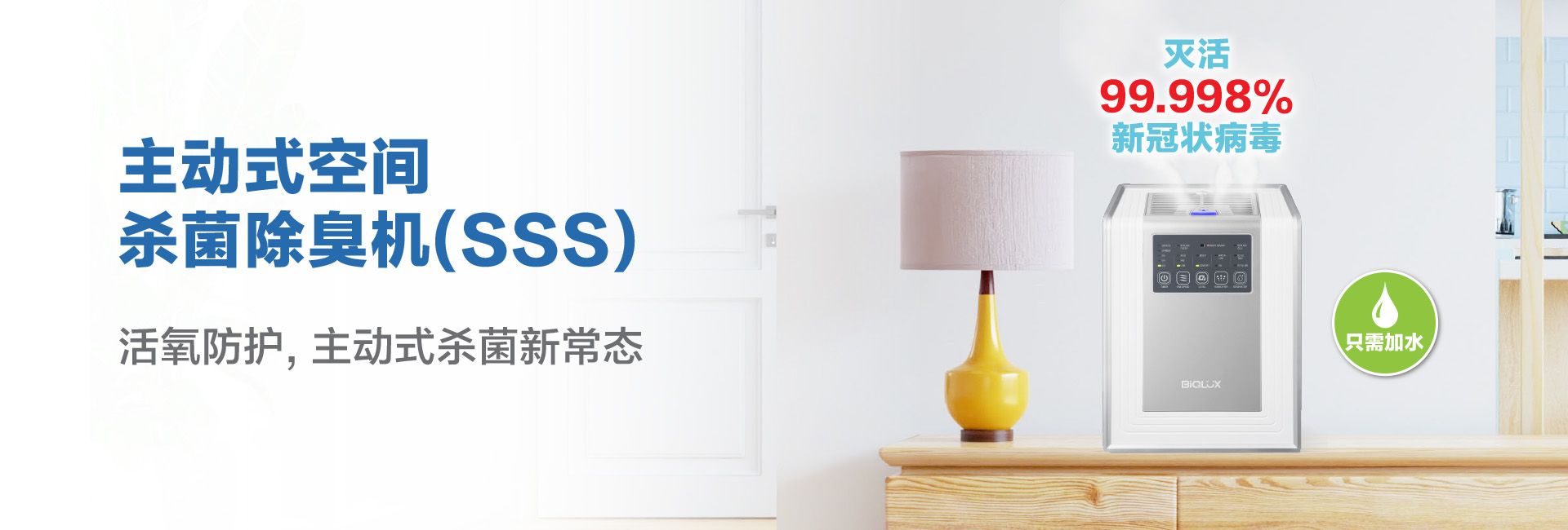 BiOLUX 主动式空间杀菌除臭机 (SSS) 的功能超越一般的空气净化器! 普通家用空气净化器是被动式的进行操作,它过滤掉空气中的污染物,并将同样的空气排出;而 SSS是主动式地释放活氧,并对空气和表面进行杀菌消毒,灭活细菌和病毒。